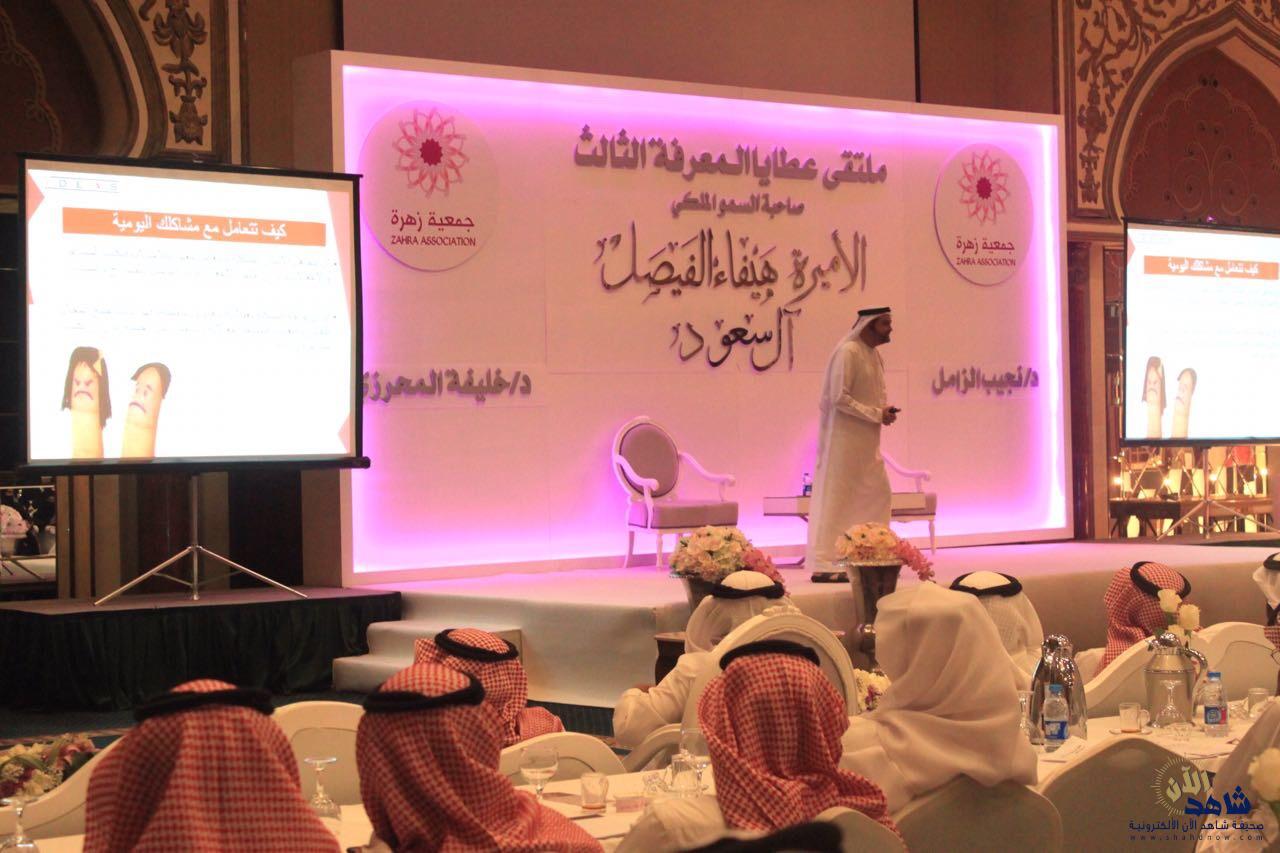 حضرت صاحبة السمو الملكي الأميرة هيفاء بنت فيصل بن عبدالعزيز آل سعود رئيس مجلس إدارة جمعية زهرة لسرطان الثدي رعاهاالله ، ملتقى عطايا المعرفة الثالث المقام بفندق الانتركونتينتال بحضور نخبة من ابرز المحاضرين على مستوى الخليج وهما الدكتور نجيب الزامل من السعودية والدكتور خليفة المحرزي من الامارات وبحضور مدير الشؤن الصحيه الدكتور عبدالحميد العميرا .