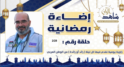 وفي هذا السياق، ضيفنا (الثاني ) في اليوم الثامن والعشرين من شهر رمضان المبارك (الجولة 28) من دَوْلَةُ لِيبْيَا، الرائد الكشفي محمود أحمد القبلاوي المولود في السادس من شهر ابريل العام 1956م ، كان عضو مفوضية طرابلس ورابطة رواد ليبيا ، وحاليا مفوض رابطة رواد مفوضية طرابلس