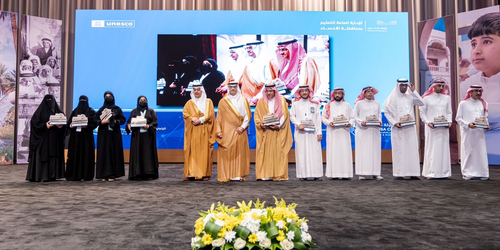 وكرّم سموّه الجهات المشاركة في إعداد و بناء ملف المشاركة و هي: الإدارة العامة للتعليم المستمر بوزارة التعليم، واللجنة الوطنية للتربية و الثقافة والعلوم، وإدارة التعليم بالهيئة الملكية بالجبيل، وأمانة الأحساء.
