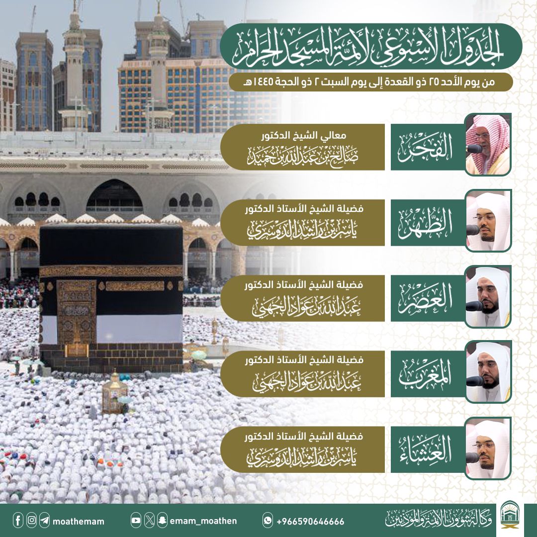 سيكون أئمة المسجد الحرام حسب الجدول التالي: