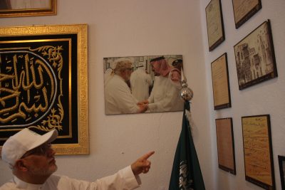 وزين “برقة” مكتبه الفسيح بعدد نادر من جداريات وثائق تاريخية ورثها عن ابيوبة تحكي وتؤكد قصة الإنسان السعودي المكي مع خدمة ضيوف الرحمن إلى جانب عدد من اللوحات الفاخرة التي تضم نقوشا وآيات من “ثوب الكعبة” في منظر بهيج يسر الناظرين وزاد المكان رونقا وجمالا،.