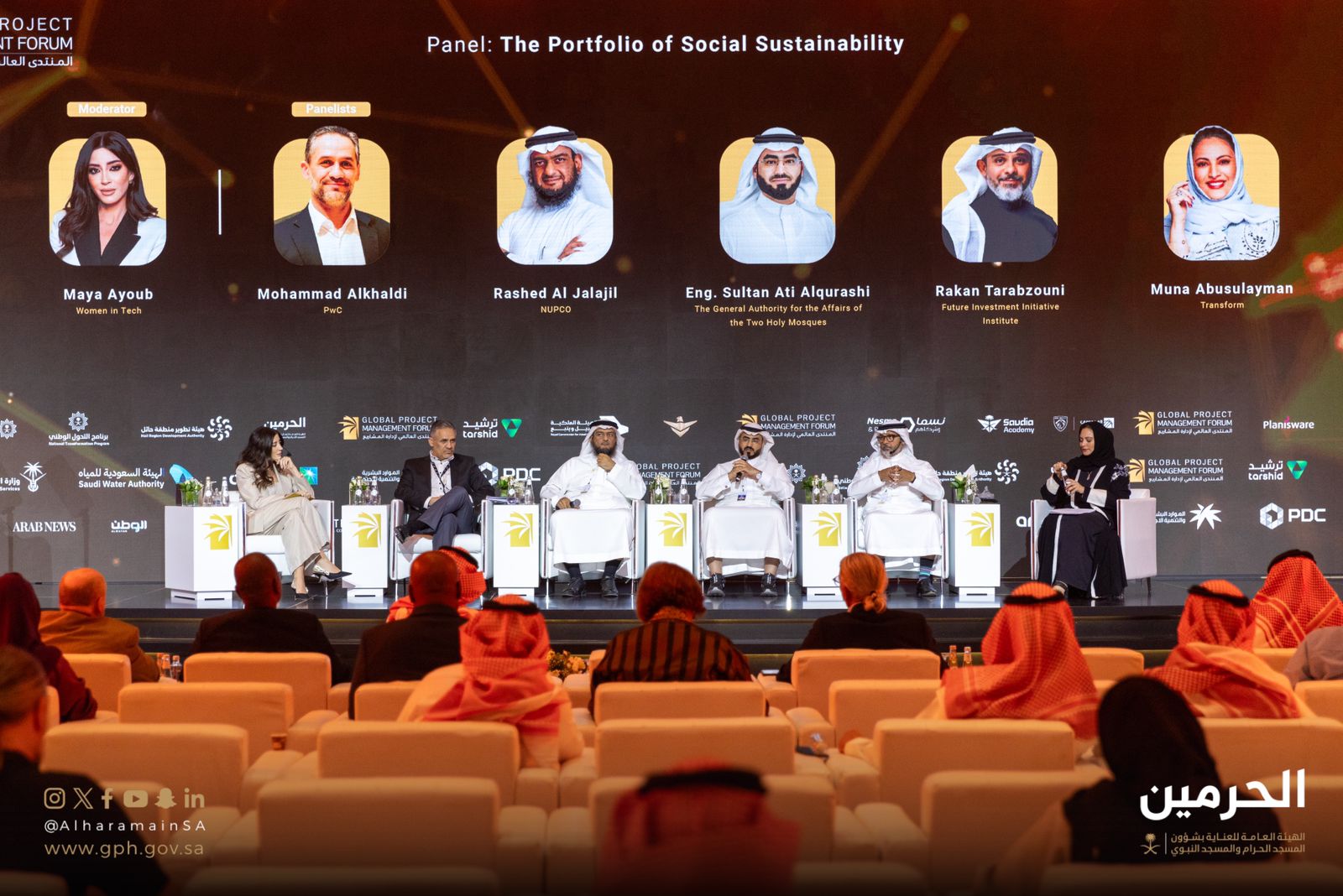 شاركت الهيئة العامة للعناية بشؤون المسجد الحرام والمسجد النبوي بجلسة حوارية بعنوان ” الاستدامة الاجتماعية في الحرمين الشريفين “، وذلك ضمن فعاليات المنتدى العالمي لإدارة المشاريع والمقام بمدينة الرياض .