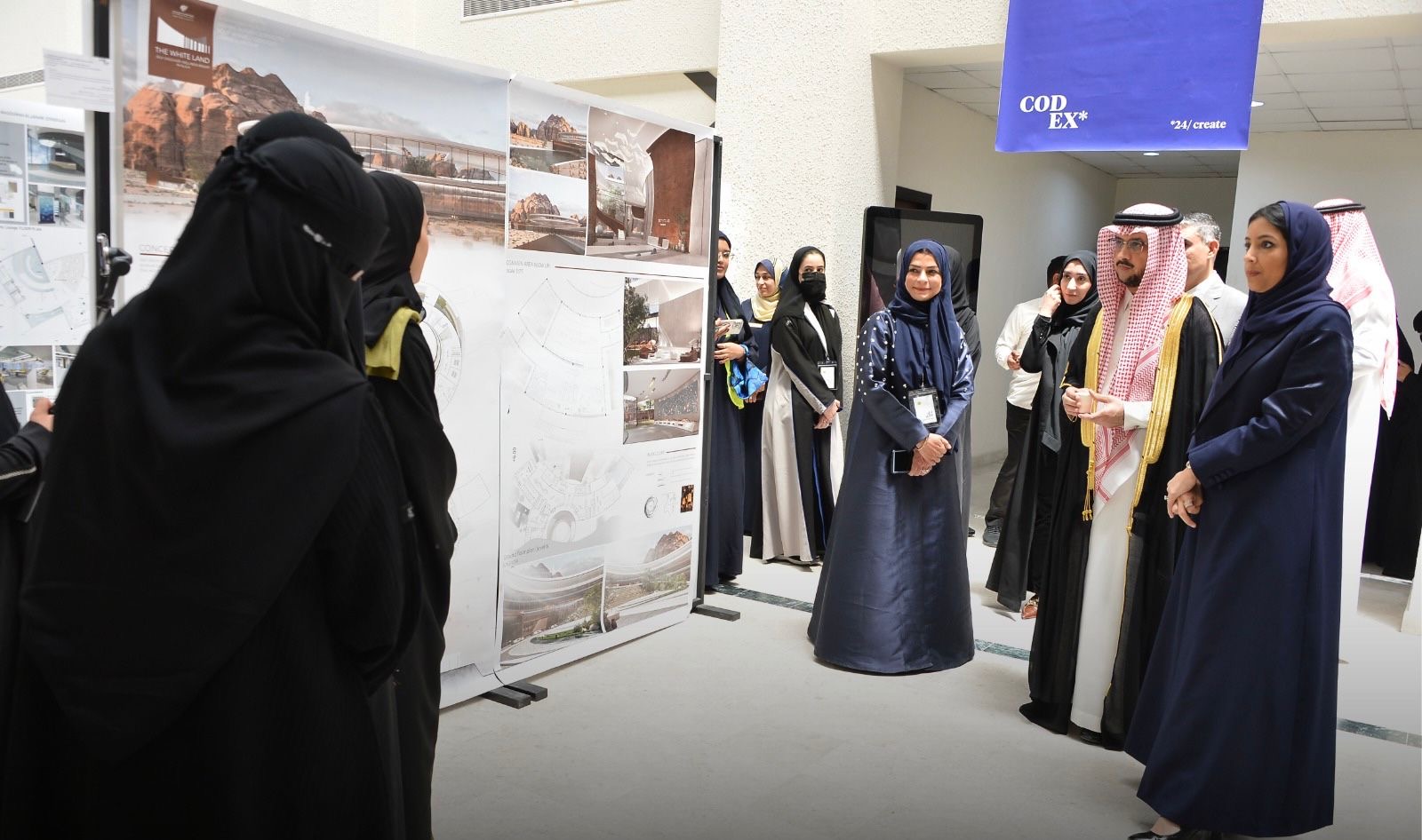 اختتمت أمس الخميس كلية التصاميم بجامعة الإمام عبدالرحمن بن فيصل معرضها السنوي (CODEX*24 ) والذي اشتمل ما يزيد على 400 مشروع من مختلف برامج الكلية الثلاث تصميم داخلي ،تصميم المطبوعات والوسائط المتعددة والتصميم الصناعي تنوعت ما بين مشاريع مبتكرة ، ومستدامة ، وتواصل وفن ، كما صاحب المعرض العديد من ورش العمل وحلقات النقاش طيلة فترة إقامة المعرض الذي كان برعاية معالي رئيس جامعة الإمام عبد الرحمن بن فيصل أ.د.عبدالله الربيش و تدشين سعادة نائب رئيس الجامعة للشؤون الأكاديميةد.غـازي الـعتيبي بحضور نائبة الرئيس للتطوير والشراكة المجتمعية الدكتورة نهاد العمير ، و عميدة الكلية د.مي شكري وعمداء الكليات والعمادات والمعاهد ومدراء الإدارات وضيوف المعرض من رجال الأعمال والمهتمين من الشركات والمكاتب الهندسية والجامعات.