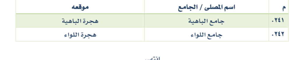 وجاءت أسماء المصليات والمساجد كالتالي: