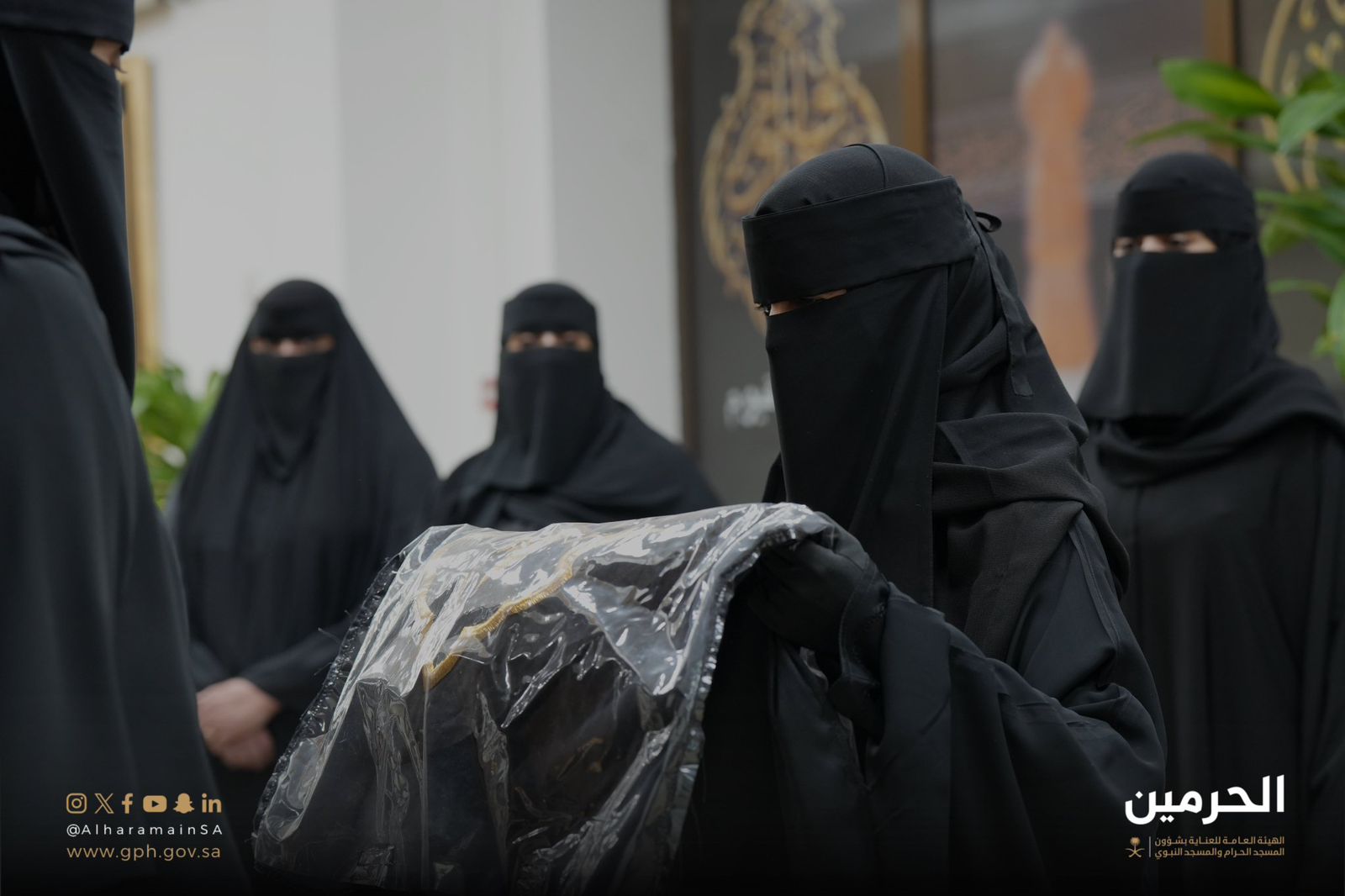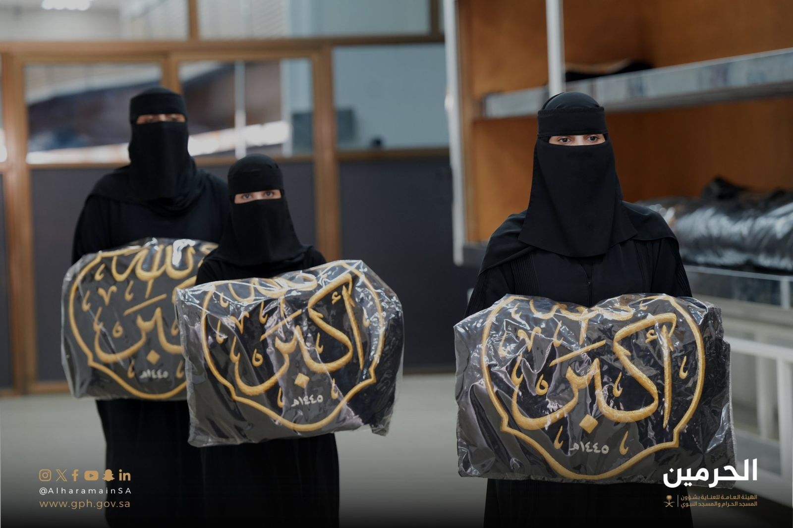 مشاركة منسوبات الهيئة العامة للعناية بشؤون المسجد الحرام والمسجد النبوي في مراسم تغيير ⁧‫كسوة الكعبة المشرفة‬⁩.