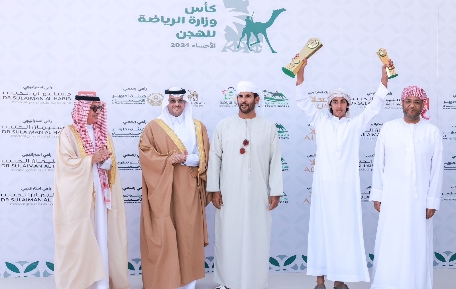 تحت رعاية صاحب السمو الملكي الأمير سعود بن نايف بن عبدالعزيز أمير المنطقة الشرقية، توَّج صاحب السمو الملكي الأمير سعود بن طلال بن بدر محافظ الأحساء ، اليوم ” الخميس ” ، بميدان السيح الفائزين بالمراكز الأولى من منافسات كأس وزارة الرياضة للهجن 2024، وذلك على أرض ميدان السيح للهجن بمحافظة الأحساء ، بحضور نائب رئيس الاتحاد السعودي للهجن محمد البلوي، وعدد من المسؤولين .