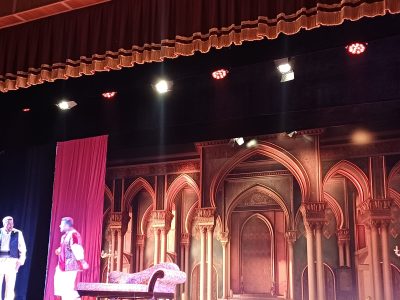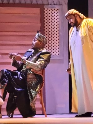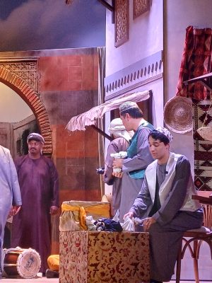 في تصوير بديع لأداء الممثلين وتغيير ديكور المسرح بما يعطي انطباع للمشاهد بالتفاعل مع الواقع التمثيلي لفصول المسرحية مع اضافة فواصل فنية بين الفصول أضفت البهجة والسرور على الحضور .