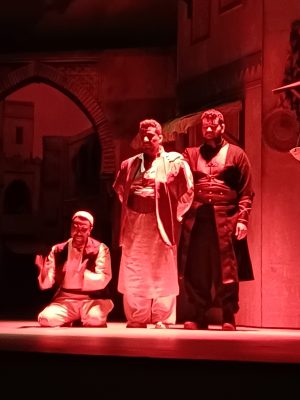 وفي الختام وقبل إغلاق الستار وقف المخرج وفريق العمل فحياهم الجمهور الذي حضر بكثافة -من جميع الاعمار- لجمال الأداء وسط الثناء والدعوات لهم بالتوفيق وتكرار النجاح .