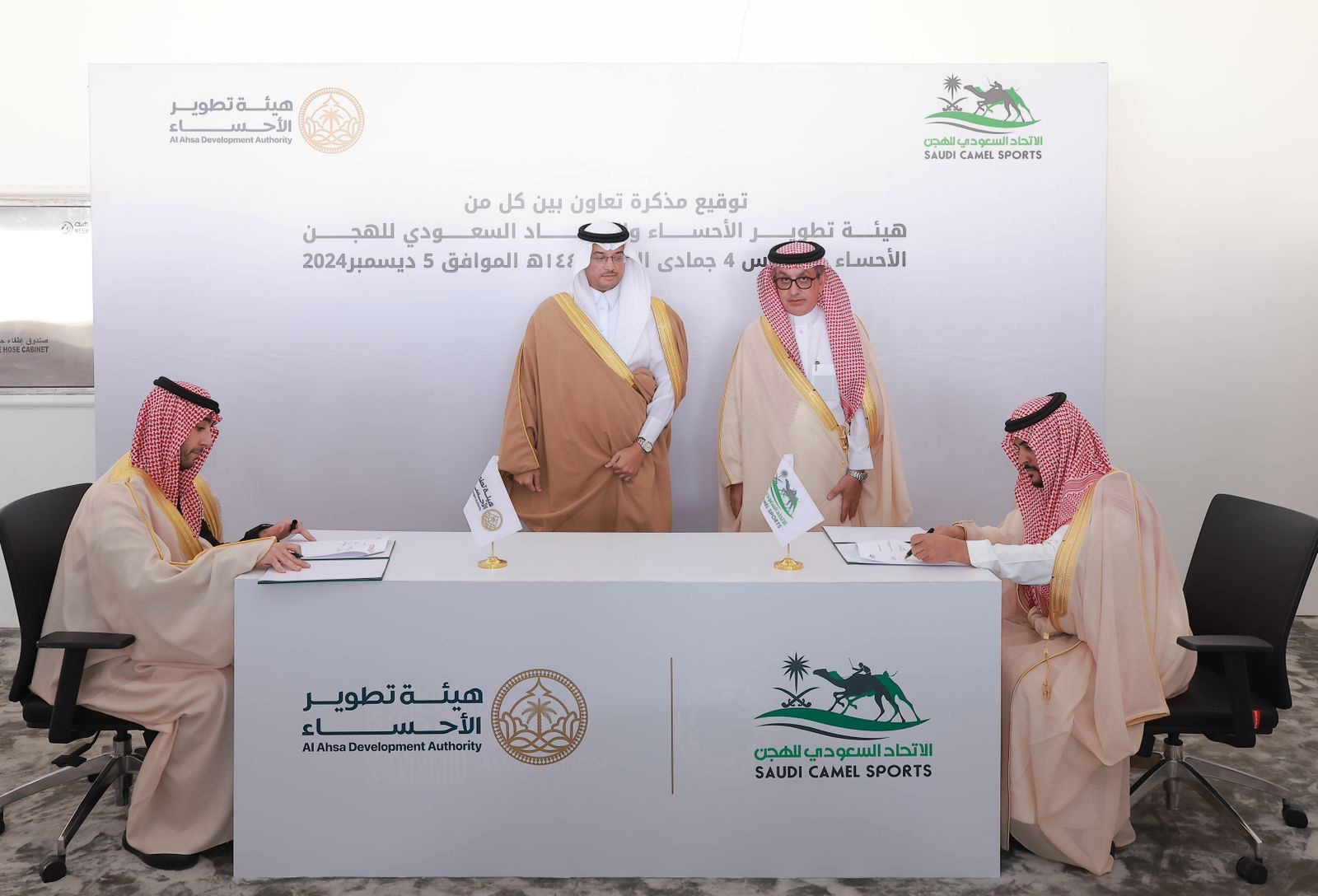 رعى صاحب السمو الملكي الأمير سعود بن طلال بن بدر محافظ الأحساء الرئيس التنفيذي المكلف لهيئة تطوير الأحساء ، يوم ” الخميس ٥ – ١٢ – ٢٠٢٤ م ” ، توقيع اتفاقية تفاهم بين هيئة تطوير الأحساء والاتحاد السعودي للهجن لتعزيز التعاون في مجالات تطوير رياضة الهجن، وتنظيم الفعاليات الثقافية، ودعم البنية التحتية لسباقات الهجن، بالإضافة إلى إثراء المشهد الثقافي والرياضي في الأحساء.