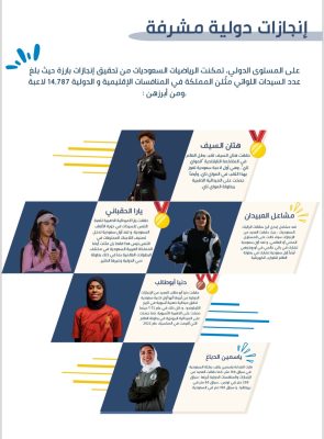 من بين هذه الإنجازات، تبرز دنيا أبو طالب التي حصلت على الميدالية الذهبية في بطولات الجودو العالمية، وهتان السيف التي تألقت في المواي تاي وحصدت ميداليات ذهبية في عدة منافسات دولية. كما حققت الحسناء الحماد الذهبية في المبارزة، وأضافت أسيل الحمد إنجازًا تاريخيًا بحصولها على أول ميدالية ذهبية سعودية في سباقات السيارات.