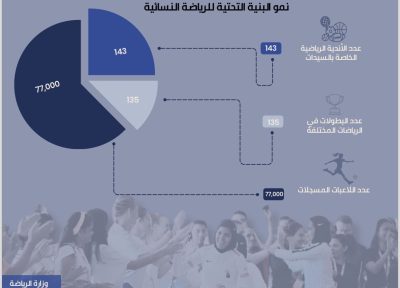 تمكنت البنية التحتية للرياضة النسائية في المملكة من تحقيق تطور ملحوظ، حيث ارتفع عدد الأندية النسائية إلى 135 نادٍ تحت إشراف وزارة الرياضة، مما يعزز الفرص المتاحة للمرأة في مختلف مناطق المملكة. كما شهدت البطولات النسائية زيادة كبيرة، حيث بلغ عددها في عام 2024 حوالي 143 بطولة في رياضات متنوعة، مما يعكس التنوع والنمو السريع في هذا القطاع. بالإضافة إلى ذلك، يُلاحظ إقبال الأجيال الجديدة على الرياضة، حيث بلغ عدد الطالبات المسجلات في دوري المدارس للبنات 77 ألف طالبة، مما يشير إلى مستقبل واعد وازدهار لرياضة المرأة في المملكة.