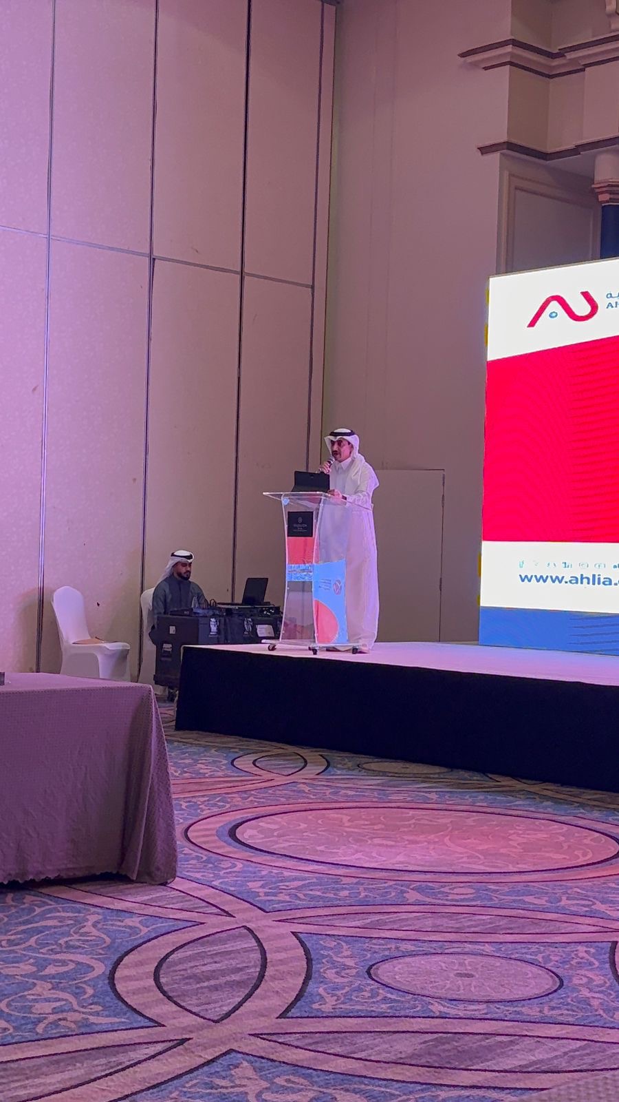 ومن ثم قدم الأستاذ خالد العبدالكريم كلمة قدم فيها الشكر والتقدير للجامعة الاهلية بمملكة البحرين مشيداً بالإنجازات التي تحققها الجامعة في جميع المجالات ومثمناً كل الجهود التي يبذلها الأساتذة والأكاديميون في إيصال رسالتهم التعليميه ومتمنياً التوفيق للجميع.