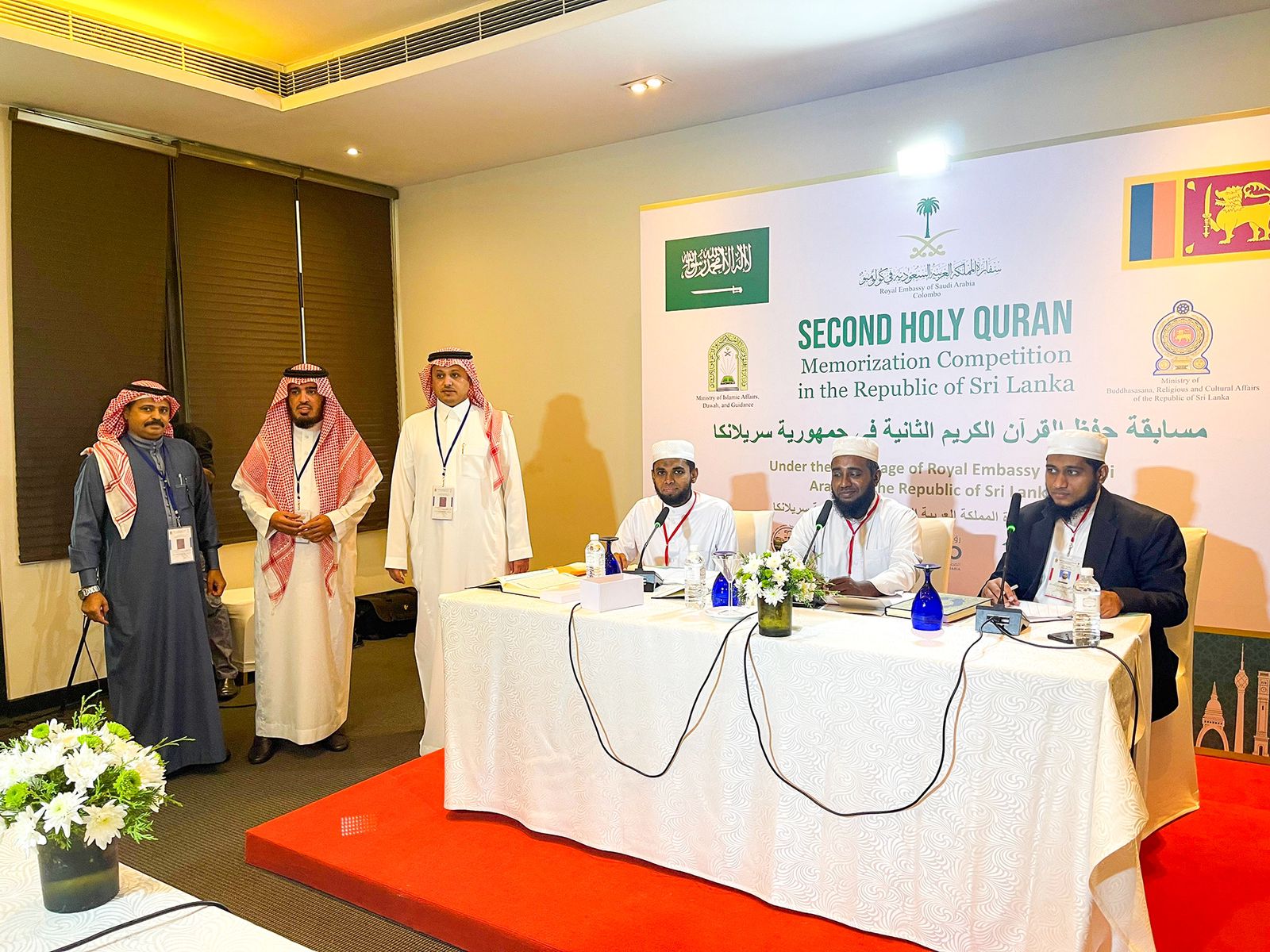 بدأت صباح اليوم السبت التصفيات النهائية للمسابقة الوطنية الثانية لحفظ القرآن الكريم، التي تنظمها وزارة الشؤون الإسلامية والدعوة والإرشاد بالمملكة العربية السعودية، ممثلة في الملحقية الدينية في الهند، بالتعاون مع سفارة خادم الحرمين الشريفين في كولومبو في قاعة “جول فيس” بالعاصمة كولومبو بجمهورية سريلانكا، وذلك في إطار جهود المملكة لدعم الأنشطة القرآنية محلياً ودولياً، اتساقاً مع رسالة المملكة في خدمة الإسلام والمسلمين بالعالم.
