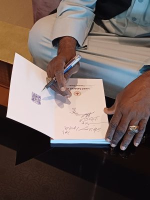 الرئيس الشرفي لاتحاد رواد العرب يتسلم نسختي الكتاب: