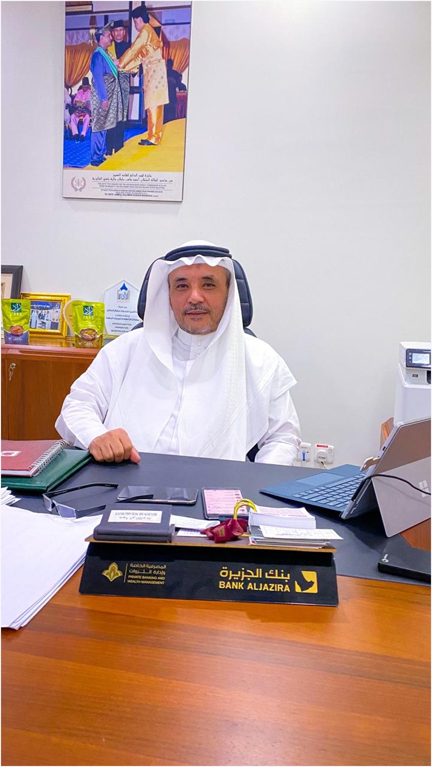 وسبب حصولي على الوسام أن ابنة ذلك السلطان حضرت للحج وكلفت ابني لخدمة الحملة فسألت هذا الولد من أبيه فقالوا هو ابني فاستدعتني فلما حضرت قالت اهلاً  ـ  بالداتو ـ وشكرتني على الخدمة المقدمة فبشرني بعض الزملاء بأن هذه المنادة هو منح للوسام وفعلاً تشرفت بنيل الوسام من والدها والحمد لله الذي مكنني من زرع خدمة الحجاج في ابنائي .