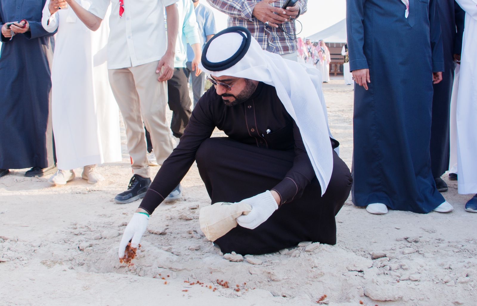 وشارك سعادته والحضور بنثر البذور والتي تستهدف الفعالية بنثر ( مليونين بذرة ) ، أثناء مسيرة مسافة 12 كيلو ، وبمشاركة مُلاك الإبل، وفرق المشاة، وفرق الإنقاذ بسيارات الدفع الرباعي، والطيران الشراعي ، ويأتي ذلك في إطار الاحتفاء بـ”عام الحرف اليدوية”، حيث خُصص قسم خاص للحرفيين لعرض منتجاتهم التقليدية التي تمثل إرثًا ثقافيًا غنيًا، بالإضافة إلى تقديم أطباق الطبخ الشعبي التي تمثل جزءًا من الهوية الثقافية للمملكة .