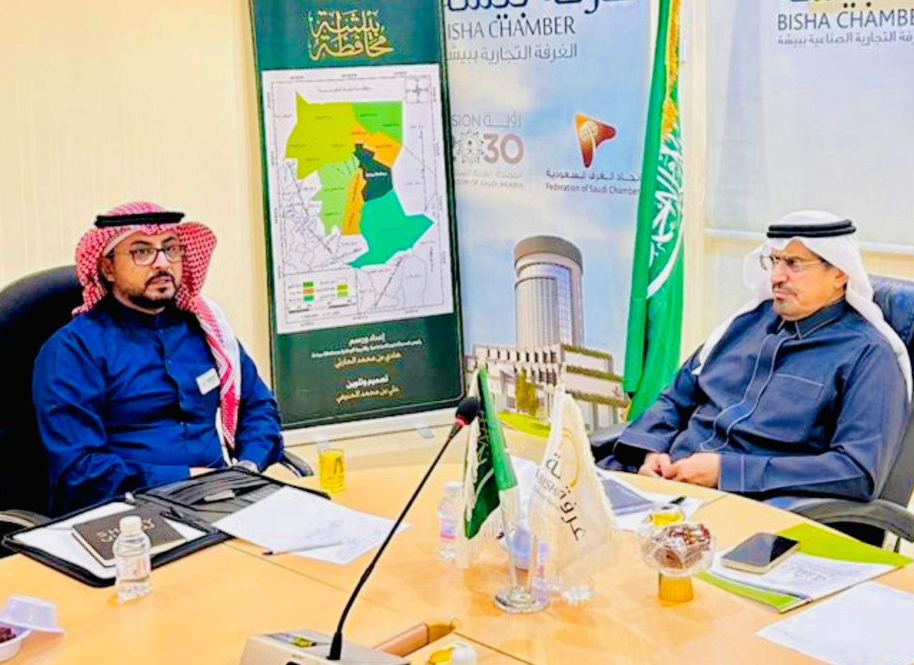 التقى رئيس مجلس إدارة غرفة بيشة الأستاذ جلوي بن محمد آل كركمان، مستشار تقييم أداء الغرفة من شركة شوري للاستشارات الدكتور أمين الحازمي.