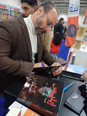 وفي الصالة 1 جناح B62 دار سما للنشر التقينا بالكاتب حازم توفيق صاحب كتاب “عشق الخيانة، “