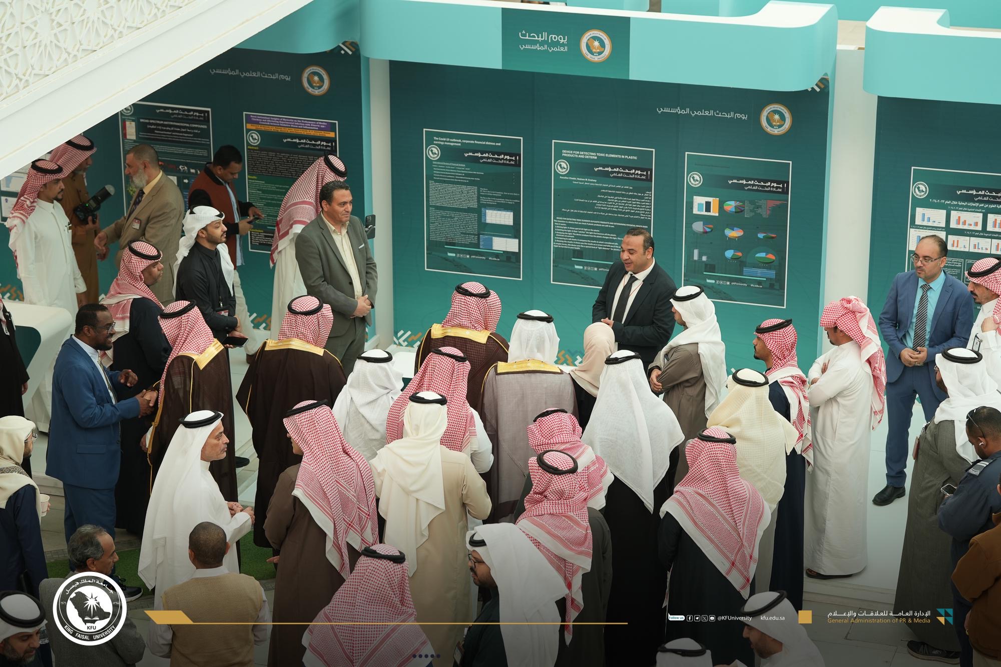 وأكد سعادة عميد البحث العلمي بالجامعة، الدكتور منصور بن عبدالله اليحيا، عن شكره وامتنانه لسعادة رئيس الجامعة على دعمه ورعايته للمعرض، مؤكداً التزام الجامعة بالتميز البحثي، كما شكر الباحثين من جميع الكليات والمراكز البحثية على إسهاماتهم وجهودهم المتميزة.