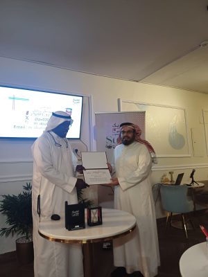 وفي ختام الأمسية كرم القائمون على المقهى ضيفهم المتحدث بشهادة شكر