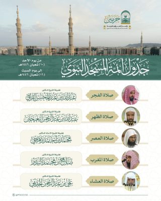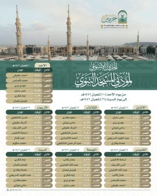 الجدول الأسبوعي لمؤذني المسجد النبوي :