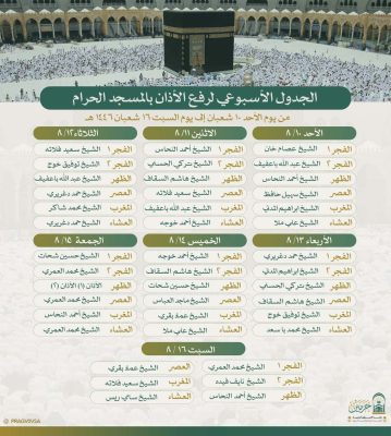 الجدول الأسبوعي لمؤذني المسجد الحرام :