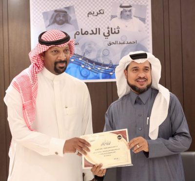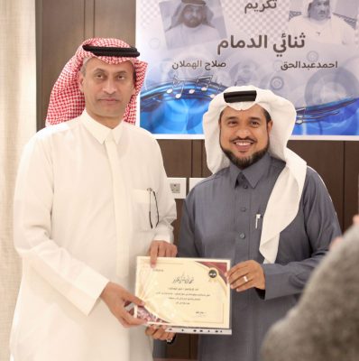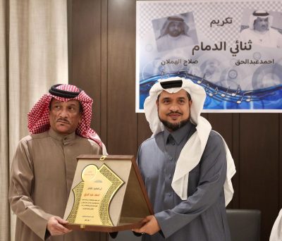 ومن ثم قام المهندس وائل القو بتكريم الشاعر أحمد عبدالحق والملحن صلاح الهملان والشاعرة الدكتورة هنادي الهاجري والكابتن ماجد الهملان والإعلاميين حمود الزهراني ومنير بوبشيت ومحمد السليمان وجوير اليامي وعبدالله يوسف ( تايجر) ومنظم الحفل عثمان الدوسري .