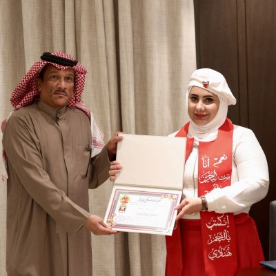 وبعدها تقدمت الشاعرة البحرينية الدكتورة هنادي الهاجري بأشادة كبيرة بالشاعر أحمد عبدالحق والملحن صلاح الهملان ومن ثم القت قصيدة معبرة في مملكة البحرين والمملكة العربية السعودية وقالت إن البلدين الشقيقين مثل القلب والعين .