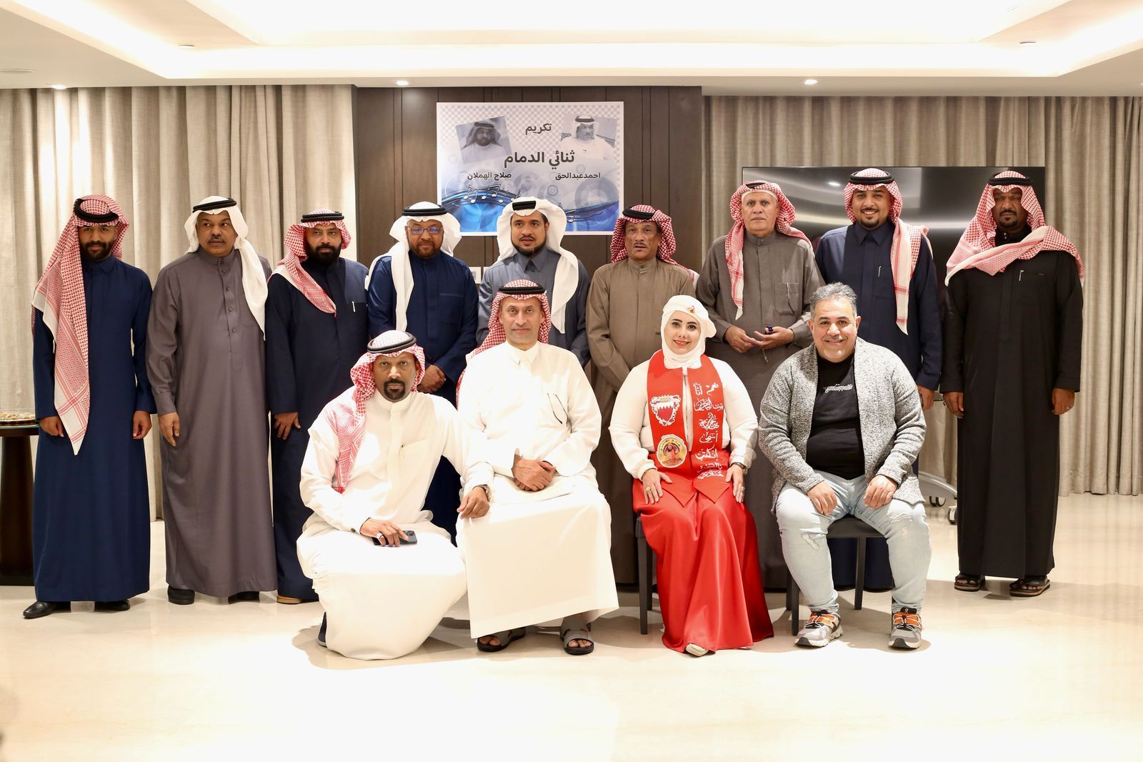 ومن ثم القى المهندس وائل بن سعيد القو كلمة رحب فيها بالحضور مقدماً الشكر والتقدير للجهود التي بذلت في هذه الامسية وقال ان التكريم واجب علينا للشاعر أحمد عبدالحق والملحن صلاح الهملان وهم يستاهلون وانا ابن المنطقة الشرقية وما قدمناه هو واجب علينا ولن نتأخر في تكريم المميزين وكل من يستحق التكريم والذي اقدر اقدمه قدمته وحقيقة انا سعيد بحضوركم إعلاميين ونجوم لاعبين وفنانين ولا أنسى هنا اقدم الشكر والتقدير للشاعرة البحرينية الدكتورة هنادي الهاجري التي أسعدتنا ونتمنى لها التوفيق وللجميع.