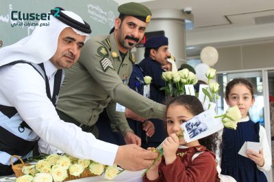بالورود والحلويات والهدايا وذلك استشعارا وفرحة بهذا اليوم المجيد إنه يوم العز والفخر لكل من هو موجود على أرض هذا الوطن الغالي أو من ينتمي له.