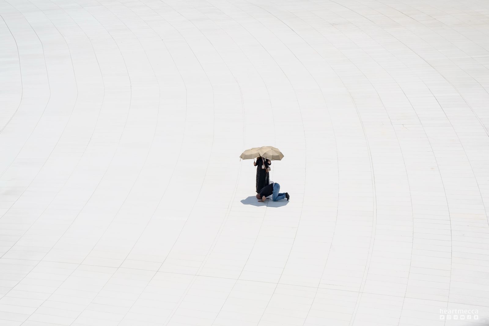 ومن بين عشرات الصور، برزت واحدة أحدثت ضجة في المعرض وعلى وسائل التواصل: حشدٌ من المصلين في صحن الحرم، تتوسطهم بقعة فارغة تمامًا، كأنها نافذة من السماء إلى الأرض!