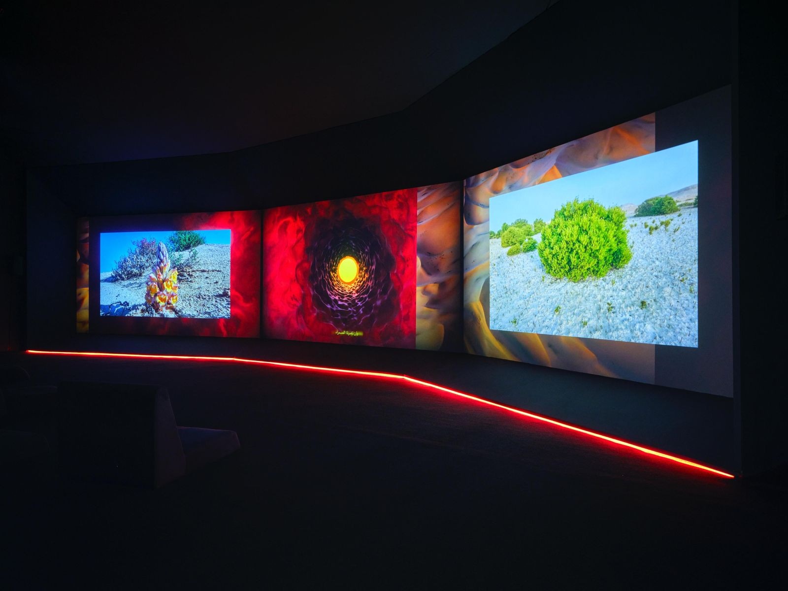 ويتناول المعرض موضوعين رئيسيين؛ الأول يتمحور حول الصحراء، باعتبارها رمزاً للرحابة واللانهاية والحياة، بينما يتناول الثاني خصوصية التقاليد الثقافية وتطور الثقافة البصرية من الماضي إلى الحاضر. يتقاطع هذان الموضوعان مع مفاهيم، مثل: الذاكرة، الوعي البيئي، الأصول، والهوية، ليقدما طيفاً واسعاً من الأسئلة العميقة التي تعكس تاريخ المملكة، وتاريخاً أثرته الإبداعات الفنية وأغنته القضايا المعاصرة.