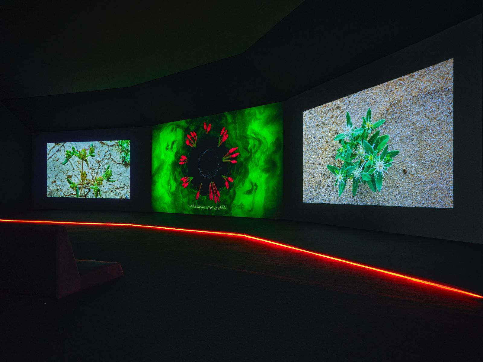 صُمم مسار المعرض بطريقة تُجسّد المشهد الثقافي المشترك بين الفنانين، وفي الوقت نفسه، تعكس وجهة نظر كل فنان، وهويته المتفردة، ودوره في بناء ثقافة بصرية خاصة وسط زخم الفن المعاصر. بأساليب جمالية ومواد متنوعة، تنسج الأعمال المعروضة حكاية التاريخ والذاكرة والتقاليد الثقافية للمملكة، فتعمّق من فهمنا لأفكار متشابكة ومواضيع معقدة، وترتقي بنا إلى آفاق جديدة من المعرفة.