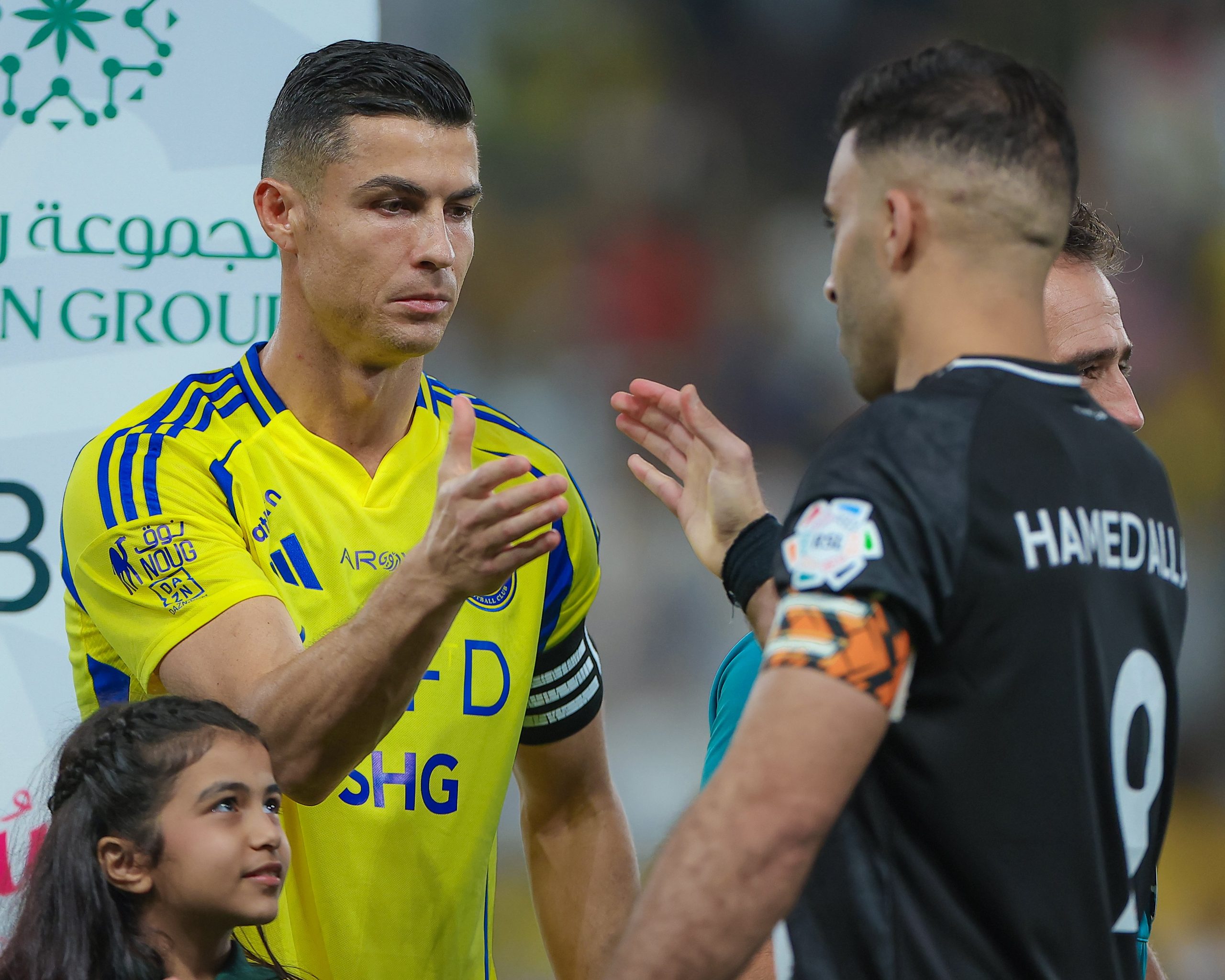 بدأت المباراة بتناول الكرة والتمرير بين أقدام لاعبي النصر حتى التهديد الأول الشبابي برأسية عبّد الرازق حمدالله ، وأفتتح النصر اللقاء بالهدف الأول بواسطة اللاعب السنغالي ساديو ماني باسيت من الكرواتي مارسيلو بروزوفيتش الدقيقة 12 ولكن ألغي بداعي التسلل، وأستمرت المباراة بمحاولات عديدة للعالمي بدون جدوى،وفي دقيقة 37 حصل النصراوي محمد سميكان على بطاقة الصفراء، الدقيقة 41 حصل فريق الشباب على ركلة جزاء نفذها اللاعب عبدالرازق حمدالله ليسجل الهدف الأول في اللقاء،أضف حكم المباراة 6 دقائق وقت بدل ضائع،سجل النصر هدف التعادل بواسطة اللاعب أيمن يحيى في الدقيقة 47، سجل الأسطورة كريستيانو رونالدو الهدف الثاني ولكن ألغي بواسطة الحكم المساعد بداعي التسلل و رجع حكم الساحة ل VAR وتأكد بأنه هدف صحيح وبذلك تقدم النصر بهذا الهدف لينتهي الشوط الأول  بهدفين مقابل هدف لصالح العالمي.