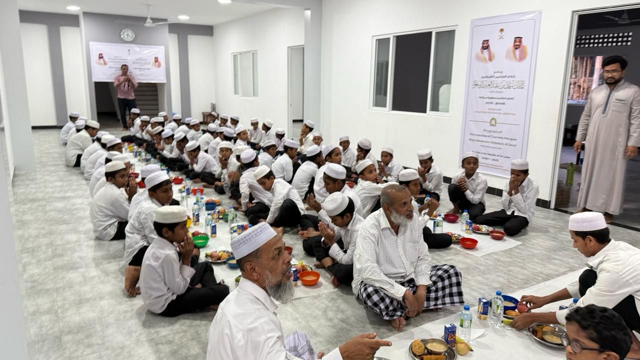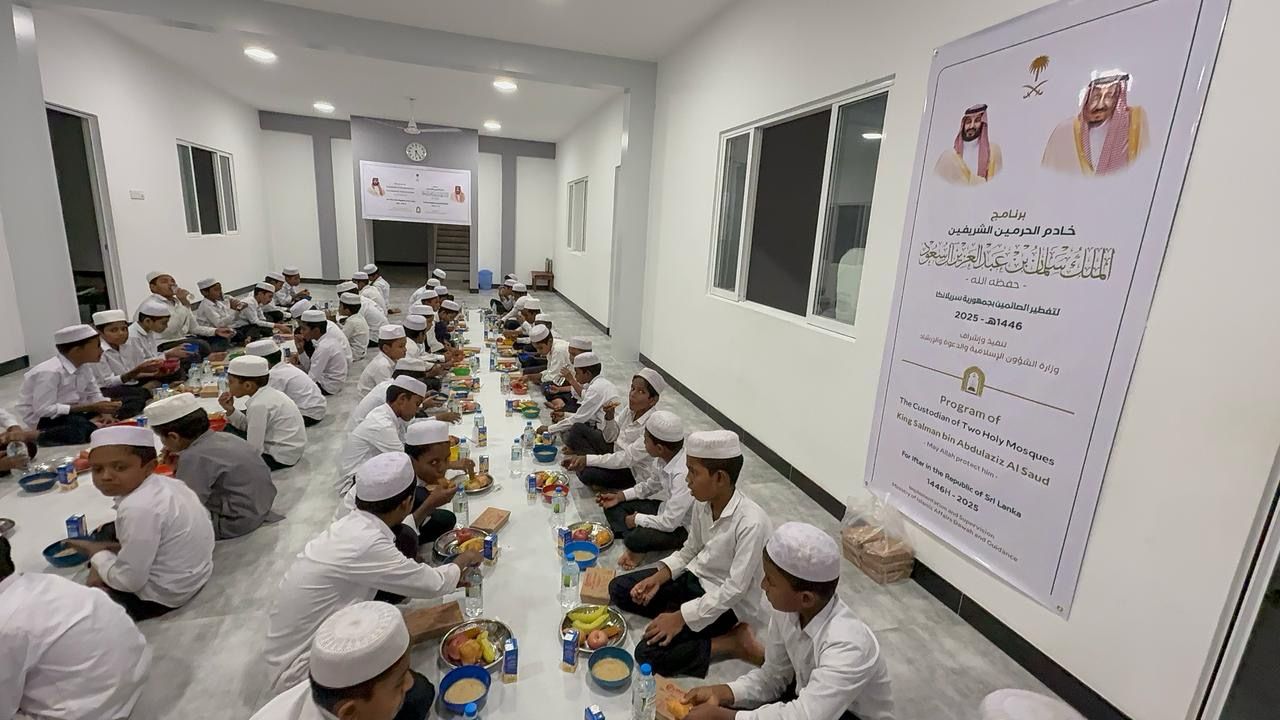 في مشهدٍ يفيض بالخير، ويعكس روح العطاء في شهر الرحمة، نظّمت وزارة الشؤون الإسلامية والدعوة والإرشاد مشروع خادم الحرمين الشريفين لتفطير الصائمين في مدينة مالوانا السريلانكية، التي تبعد ساعة ونصف عن العاصمة كولمبو، وبالتحديد في جامعة الشيخ بن باز رحمه الله حيث اجتمع أكثر من 300 طالبة من مختلف فئات الجامعة، يملؤهن الشوق لنفحات رمضان، ويظللهم دفء الإخاء والتكافل، وسط حضور نخبة من الدعاة، ورؤساء إدارات المساجد، والأئمة والخطباء، إضافة إلى أساتذة المدارس، وجمع من أهالي مالوانا،حتى أضحت المائدة منارةً تشع بروح الإيمان والتآخي.