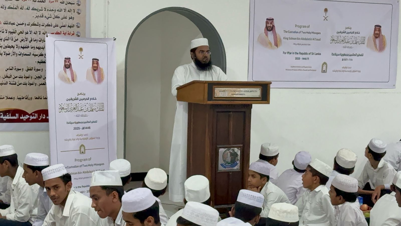 وتلى ذلك كلمة للشيخ الدكتور محمد أمجد رازق، نائب مدير معهد دار التوحيد السلفية بسريلانكا سلّط فيها الضوء على أهمية ما تقوم به وزارة الشؤون الإسلامية من أعمال جليلة تتمثل في توزيع التمور وتفطير الصائمين وبرامج العمرة، مؤكداً أن هذه الجهود تعكس رسالة الإسلام السامية، التي تدعو إلى المحبة والتراحم بين المسلمين في مشارق الأرض ومغاربها.