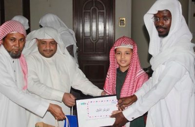 كرَّم المربي الفاضل الشيخ أمين جبريل جارا، مشرف حلقات جامع الأميرة الجوهرة بالهنداوية بمكة المكرمة، وبحضور الأستاذ فيصل العصيمي والأستاذ عبدالله حسين أحمد والأستاذ مصطفى كمال الدين ونخبة من رجال التربية والتعليم والإعلاميين، وأولياء أمور الطلاب المكرمين من حلقات تحفيظ القرآن الكريم بالجامع في الحفل الختامي السنوي لمسابقة أهل القرآن الرمضانية لعام 1446هـ الذي تنظمه شبكة “كورة مكة” الرياضية بقيادة الإعلامي المتميز “عبدالعزيز نافع”، والذي نظمته الحلقات بمشاركة سكان مكة المكرمة وخارجها. وقد بلغ مجموع المشاركين في المسابقة 111 مشاركًا، 89 مشاركًا في فئة الكبار و22 مشاركًا في فئة الصغار. وتم تكريم المراكز العشرة الأولى بمبالغ مالية وجوائز قيمة، وهم المشاركون: أحمد ديالو، عبدالله الشميري، عمار عثمان، بشار أحمد، مصطفى حما، معراج جمال، سعيد برناوي، أحمد أمير، عبدالرحمن عبدالشكور، وليد أمادو، عبدالله هوساوي، عمر المولد، خالد عبدالقادر، عابد أحمد، أحمد سيد، فواز حسين، عزيز عبدالأول، محمد مامان. وتم تكريم 5 طلاب من المتفوقين والمتميزين والمشاركين في إمامة المصلين في صلاة التراويح في شهر رمضان المبارك، الذين أتموا حفظ القرآن الكريم كاملًا، وهم الطلاب: عمار فلاته، وإبراهيم هوساوي، ونذير برناوي، وعبدالودود إسماعيل، وعبدالمجيد يوسف.