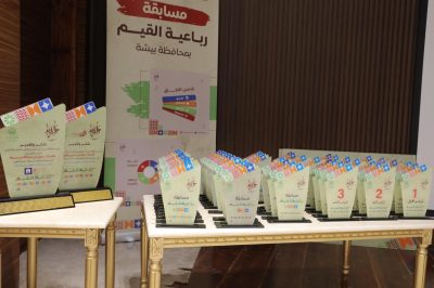 برعاية سعادة محافظ بيشة، عبدالرحمن بن عبدالله آل حامد، أقامت محافظة بيشة الحفل الختامي لمبادرة مسابقة رباعية القيم، ضمن مبادرات أجاويد 3 , وذلك بالمركز الحضاري، بحضور مدراء الجهات الحكومية والأمنية ، وتهدف المسابقة إلى تعزيز القيم الإنسانية الأربع ونشر الوعي بأهميتها.