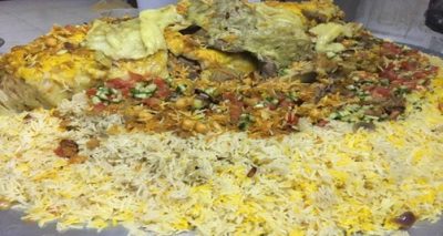 وأصناف متنوعة من الحلويات مثل المعمول والكليجا ، وفي مناطق يختلف تماما لا يفضلوا اللحوم ويعوضها بالأكلات الشعبية (النواشف) والديبازه والزلابية وغيرها