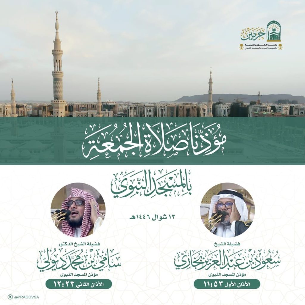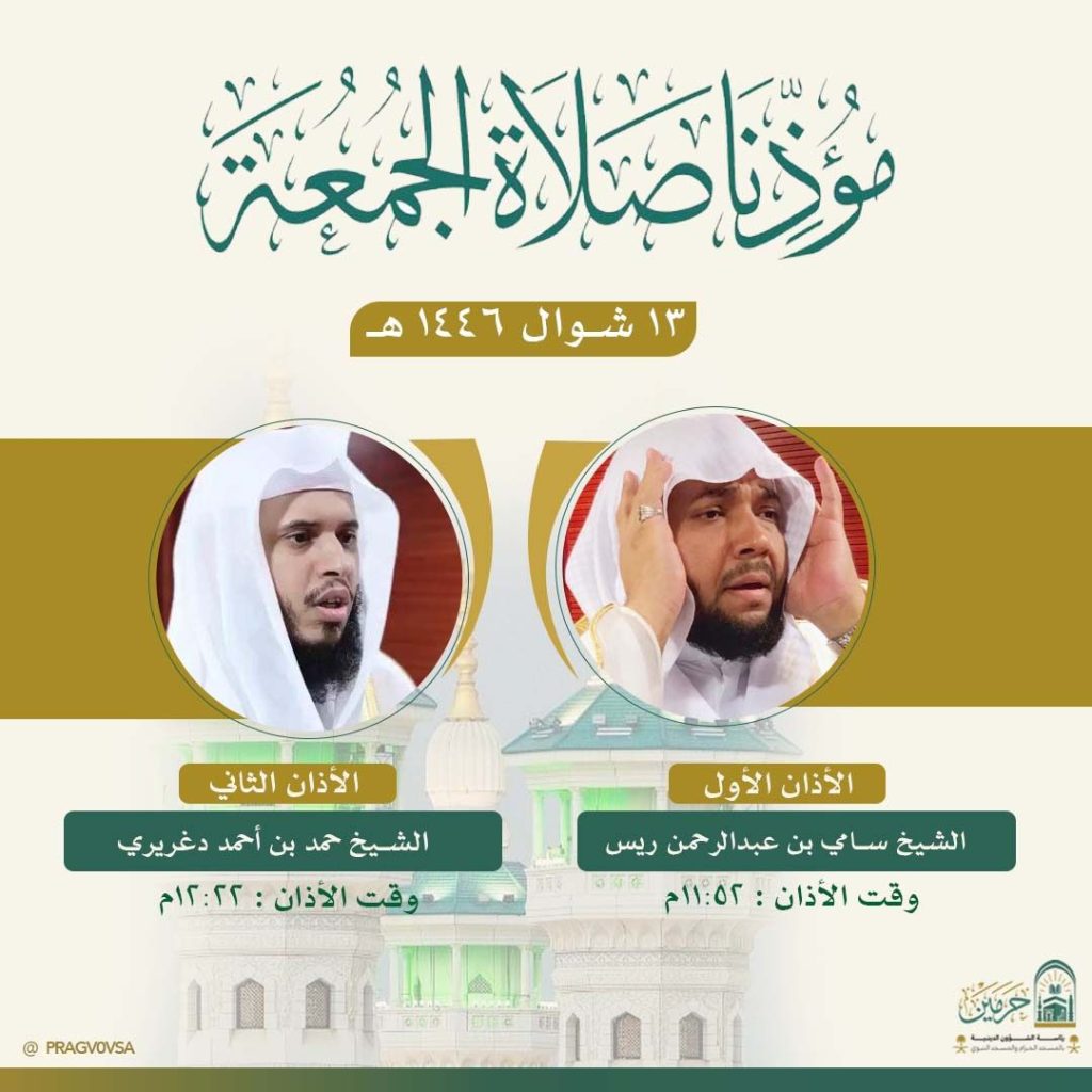 أسماء مؤذني صلاة الجمعة في المسجد الحرام والمسجد النبوي