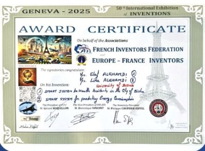 حققت طالبات كلية الهندسة بجامعة بيشة إنجازًا دوليًا خلال مشاركتهن في معرضجنيف الدولي للاختراعات 2025: حيث حصلت مجموعتان من الطالبات على جائزةالاتحاد الفرنسي للمخترعين (FRENCH INVENTORS FEDERATION): تقديرًالابتكاراتهن المتميزة.