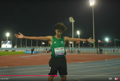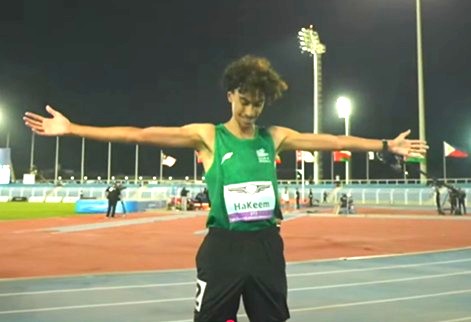 أضاف العداء السعودي الواعد هاشم أحمد حكيم في منافسات اليوم الثاني للبطولة الآسيوية السادسة لألعاب القوى للناشئين والناشئات، المقامة هذه الأيام على ميدان ومضمار مدينة الأمير نايف الرياضية بالقطيف شرق المملكة العربية السعودية، الذهبية الثانية للمنتخب السعودي المشارك في البطولة، عندما حل أولًا في نهائي سباق القوة والتحمل 2000م موانع، قاطعًا مسافة السباق بزمن وقدره 6:06.06 د، تاركًا المركز الثاني للعداء (شوخجاخون خير اللهييف) من أوزبكستان بزمن وقدره 6:14.31 د ونال الميدالية الفضية، في حين ذهبت البرونزية إلى الصيني (لي غوانشي) بزمن وقدره 6:14.33 د، رافعًا رصيد بلاده في قائمة الميداليات إلى ذهبيتين في نهاية اليوم الثاني للمنافسة.
