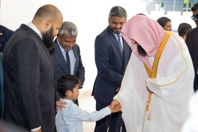 واصل إمام وخطيب المسجد النبوي فضيلة  الشيخ الدكتور صلاح البدير ؛ إمام وخطيب المسجد النبوي؛ زيارته لجمهورية المالديف  ؛ تعزيزًا لمهام وأدوار أصحاب الفضيلة أئمة الحرمين  الإثرائية، وإيصال رسالة الحرمين الوسطية إلى العالم الإسلامي، حيث التقى فضيلته اليوم في العاصمة المالديفية مع فخامة الرئيس المالديفي الدكتور محمد معز،في القصر الرئاسي؛ ونقل تحيات وتقدير خادم الحرمين الشريفين الملك سلمان بن عبدالعزيز وسمو ولي عهده الأمين لفخامته الذي قدر عاليا جهود ودعم القيادة الرشيدة ؛ لحكومة وشعب المالديف.