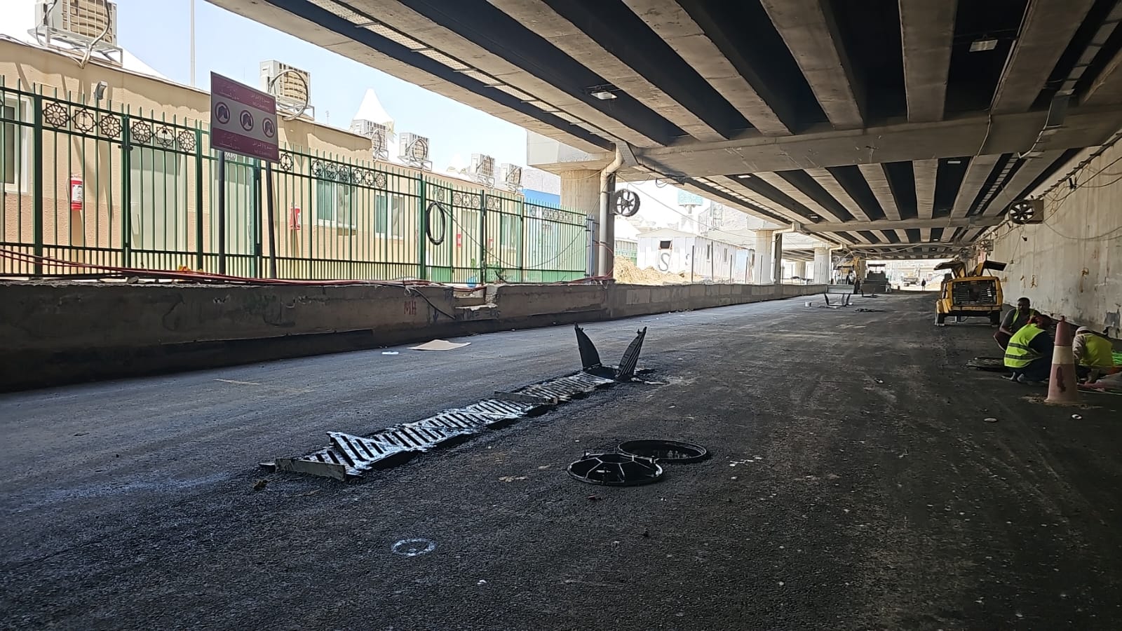 ولم تغفل المشاريع عن عنصر الأمان البيئي والمائي، إذ شمل التأهيل تطوير قنوات تصريف السيول في المنطقة بالكامل، وزيادة الطاقة الاستيعابية لتلك القنوات السفلية، تحسّبًا لأي تدفقات مفاجئة ناتجة عن الأمطار أو السيول المنحدرة من المناطق الجبلية لمشعر منى. وقد وصلت أعمال الحفر إلى أعماق تجاوزت الأربعة أمتار تحت سطح الأرض، لاختيار النقاط الأنسب لتأسيس شبكات الصرف الصحي وتصريف مياه الأمطار، بما يعكس دقة التخطيط وحرص القائمين على تقديم الحلول المستدامة.