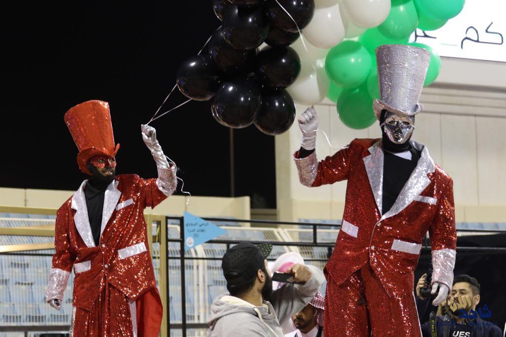 مع بداية الساعة السابعة من مساء اليوم السبت وعلى هامش المعرض وقف جميع الحضور في معرض الفيروز العائلي الترفيهي مع النشيد الوطني لدولة الإمارات العربية المتحدة بمناسبة اليوم الوطني للدولة الشقيقة، ثم تم عرض أناشيد وطنية لدولة الإمارات عبر الشاشة التلفزيونية بالملعب ومكبرات الصوت.