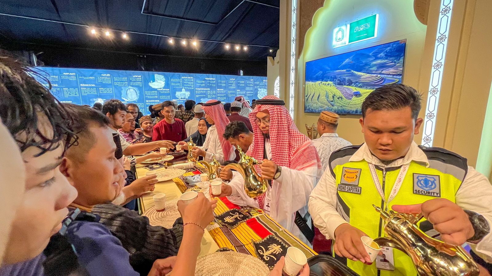 وقد أثارت الضيافة السعودية الأصيلة إعجاب زوار المعرض، حيث حرص المنظمون على تقديم القهوة السعودية بأنواعها وأصناف التمر الشهيرة، في لمسة ثقافية تعكس تراث المملكة وأصالتها التي جذبت عشرات الزوار الذين تفاعلوا مع هذه التجربة التراثية، كما قدم القائمون على المعرض شروحات عن أنواع التمر وفوائده، وعادات تقديم القهوة في المجتمع السعودي كرمز للكرم والضيافة.