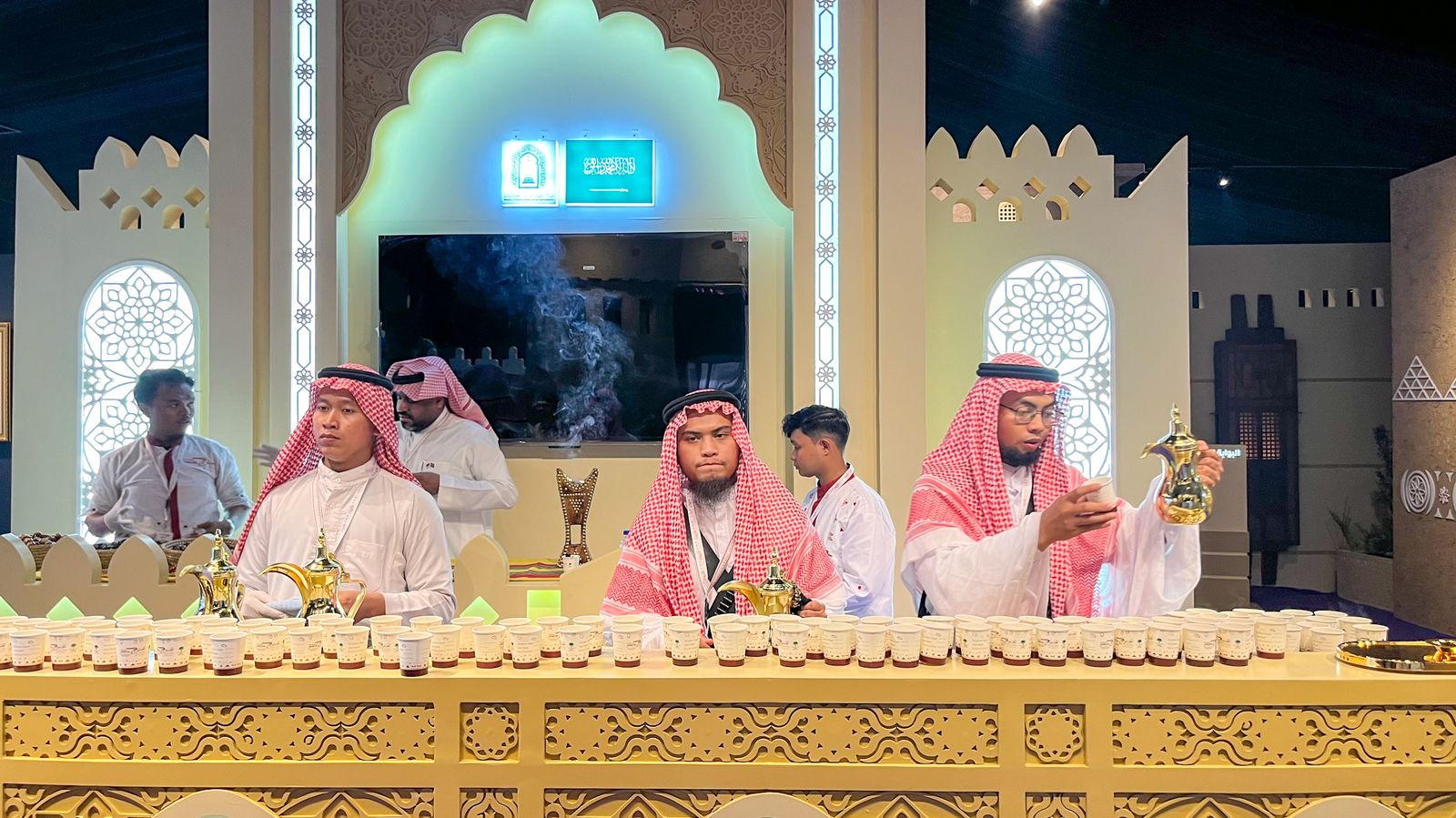 وقد أثارت الضيافة السعودية الأصيلة إعجاب زوار المعرض، حيث حرص المنظمون على تقديم القهوة السعودية بأنواعها وأصناف التمر الشهيرة، في لمسة ثقافية تعكس تراث المملكة وأصالتها التي جذبت عشرات الزوار الذين تفاعلوا مع هذه التجربة التراثية، كما قدم القائمون على المعرض شروحات عن أنواع التمر وفوائده، وعادات تقديم القهوة في المجتمع السعودي كرمز للكرم والضيافة.