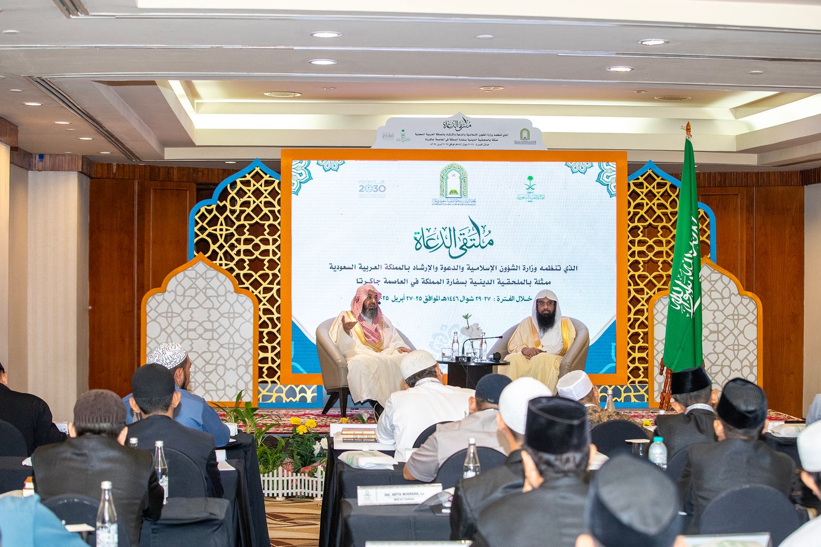 نيابة عن معالي وزير الشؤون الإسلامية والدعوة والإرشاد الشيخ الدكتور عبداللطيف بن عبدالعزيز آل الشيخ رعى وكيل وزارة الشؤون الإسلامية والدعوة والإرشاد للشؤون الإسلامية الدكتور عواد بن سبتي العنزي، اليوم الجمعة السابع والعشرين من شهر شوال لعام 1446هـ، ملتقى الدعاة السنوي بجمهورية إندونيسيا، بحضور الملحق الديني بسفارة خادم الحرمين الشريفين في جاكرتا الشيخ أحمد بن عيسى الحازمي ، ومشاركة دعاة من مختلف مدن وولايات إندونيسيا وذلك في إطار زيارته الحالية لافتتاح معرض جسور في نسخته الخامسة في جمهورية اندونيسيا حيث تناول الملتقى “بيان واجبات الدعاة في تحقيق رسالة الإسلام الوسطي “.
