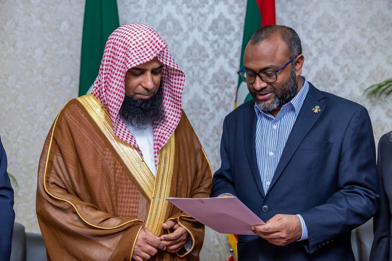 قدم معالي وزير الشؤون الإسلامية بجمهورية المالديف، الدكتور محمد شهيم علي سعيد شهادة شكر وتقدير وعرفان؛ لمعالي رئيس الشؤون الدينية بالمسجد الحرام والمسجد النبوي، الشيخ الدكتور عبدالرحمن السديس؛ نظير جهوده المباركة والقيمة في إيصال رسالة الحرمين الوسطية للعالم، وبث قيم الوسطية والتسامح والتعايش بين الشعوب، وتعزيز التعاون بين المسلمين.