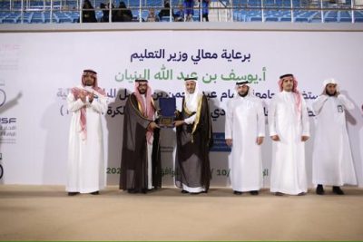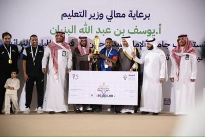 وعقب نهاية المباراة، توج رئيس جامعة الإمام عبدالرحمن بن فيصل المكلف الأستاذ الدكتور فهد الحربي، ورئيس الاتحاد السعودي للرياضة الجامعية الأستاذ الدكتور خالد المزيني، الفائزين بالمراكز الأولى في المسابقة، التي تأتي ضمن بطولات الاتحاد في موسمه الـ15 لبطولاته، حيث نال فريق جامعة الإمام كأس البطولة والميداليات الذهبية، ومبلغ 80 ألف ريال، ونالت جامعة الملك سعود الميداليات الفضية ومبلغ 60 ألف ريال، وثالثًا جامعة الحدود الشمالية ، ونالت الميداليات البرونزية ومبلغ 40 ألف ريال.